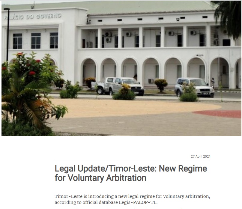 Desde 1 de Abril de 2021, podem ser resolvidos por meio de arbitragem voluntária os litígios abrangidos pelo novo Regime Jurídico da Arbitragem Voluntária de Timor-Leste, aprovado pela Lei n.º 6/2021, de 31 de Março: todos os que tenham por objecto interesses de natureza patrimonial, excepto os litígios emergentes de contratos de trabalho aos quais este novo regime não se aplica; e ainda os que tenham objecto pretensões de natureza não patrimonial desde que não sejam relativos a direitos indisponíveis (ou seja, os direitos de que as partes não podem livremente dispor, como é o caso dos direitos de personalidade ou outros direitos fundamentais) ou a questões respeitantes negócios jurídicos ilícitos. As partes podem celebrar uma convenção de arbitragem, por escrito, acordando em que os litígios emergentes do negócio possam ser dirimidos por recurso a um tribunal arbitral, em lugar de serem resolvidos com recurso aos tribunais judiciais, quer o seu domicílio ou o litígio ocorra em Timor-Leste (arbitragem interna) quer em Estado diferente (arbitragem internacional).
