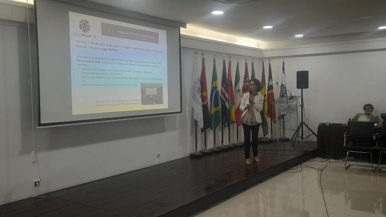 A Apresentação Legis-PALOP+TL na XVIII CMJPLOP ficou a cargo do Presidente do Comité de Coordenação e Coordenador da UTOG de São Tomé e Principe Dr. Luís Marques com o apoio da Coordenadora Regional Dra. Teresa Amador, que fez um breve sumário e contextualização do processo de revisão Regulamento de Gestão Regional da Base de Dados Jurídica Legis-PALOP+TL.