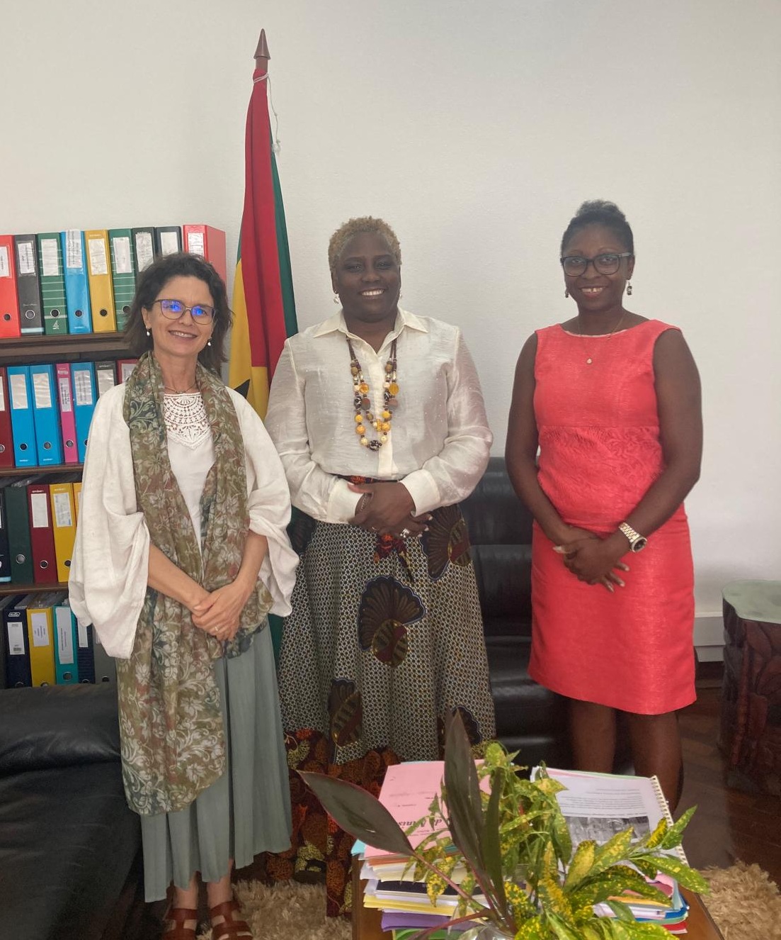 Sua Exa. a Sra. Ministra da Justiça, Assuntos Parlamentares e Direitos da Mulher de São Tomé e Príncipe, Dra. Vera Maria Assunção Gomes Cravid, recebe Coordenadora Regional do Legis-PALOP+TL, Dra. Teresa Amador, e a nova Coordenadora Nacional, Dra. Etnilza da Silva Boa Morte, em audiência no dia 29 de Janeiro de 2026.